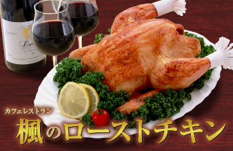 50食限定手作りピラフ入りローストチキン。1羽1Kg¥3,000(税込)