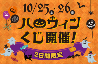 10月25日・26日ご宿泊者限定で、お菓子が当たる「ハロウィンくじ」を開催! ご宿泊の方ならどなたでも参加可能です。ハズレなしの楽しいくじ引きで、皆さまのご参加をお待ちしております!