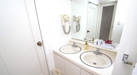 歯ブラシ・カミソリ・櫛・綿棒・ボディータオル・バスタオル・フェイスタオル・ガウン・スリッパ・使い捨てスリッパ・ハンガー・消臭スプレー・液晶TV・Wifi・冷蔵庫・電気ポット・電話器・ドライヤー・ティーバッグ(煎茶・梅こぶ茶・コーヒー)その他・シューペーパー
